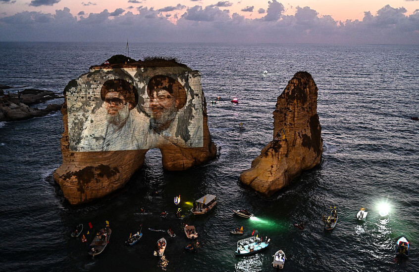 لبنان.. سلام يلغي مواعيده اعتراضا على إضاءة صخرة الروشة بصورة نصر الله