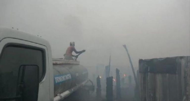 واستخدم فريق الإنقاذ صهاريج المياه في إخماد الحرائق، ولا يزال يعمل جاهدًا على التأكد من سلامة النازحين وإخماد أي مصادر للنيران.