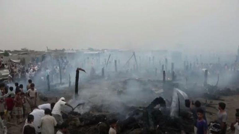 حريق يلتهم عشرات المساكن في مخيم للنازحين بالحديدة اليمنية