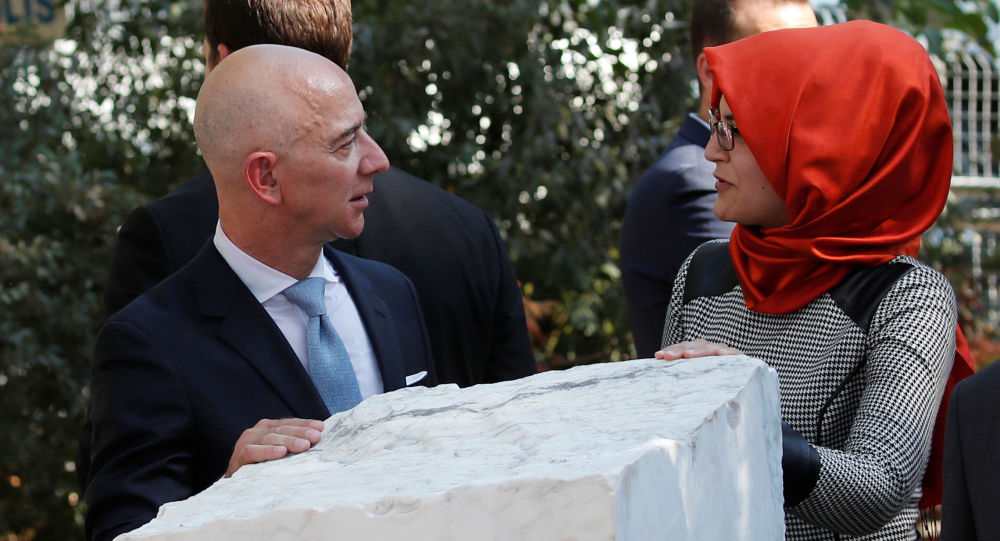 نشر الملياردير الأمريكي جيف بيزوس مالك شركة “أمازون”، صورة له مع خديجة جنكيز خطيبة الصحفي السعودي جمال خاشقجي، أمام النصب التذكاري للصحفي الراحل، معلقا باستخدام الوسم “#Jamal”.