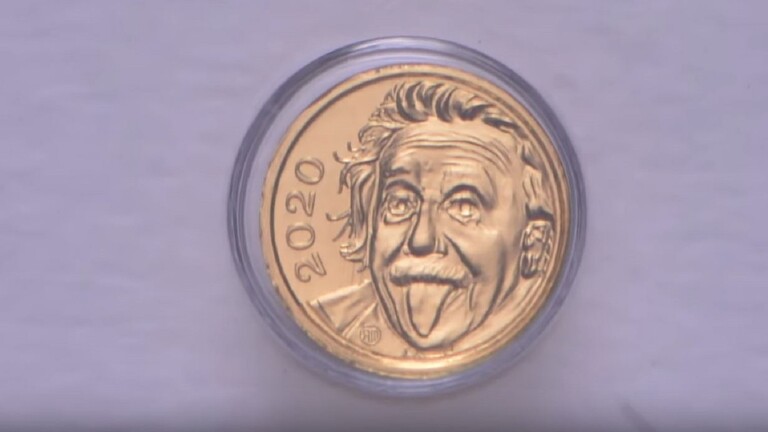 وصرحت دار السك في بيان صحفي، بأنها “أخذت الإلهام من ألبرت أينشتاين، لأسباب ليس أقلها تصميمه وصبره”.