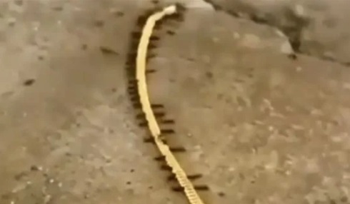 نشرت المقطع على Twitter «سوزانتا ناندا» ضابطة خدمة الغابات الهندية (IFS)، والذي وثق حمل مجموعة من النمل الأسود لـ سلسلة ذهبية وتحركهم بها على طول الطريق فوق التضاريس الصخرية.
