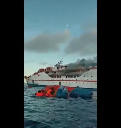 أظهرت مقاطع فيديو انتشرت على شبكات التواصل النيران وهي تنتشر بشكل كبير على متن السفينة، كما أظهرت مشاهد أخرى ركاباً وهم يلقون بأنفسهم في المياه هرباً من النيران.