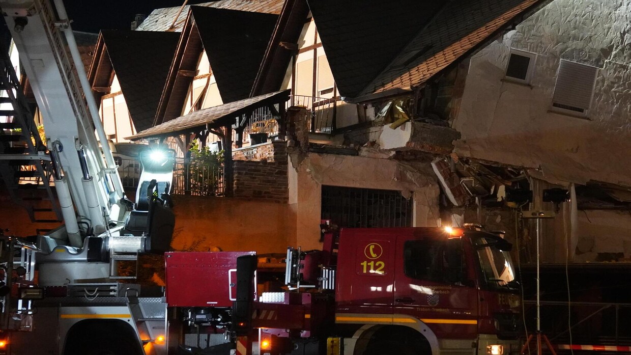 وانهار أحد طابقي المبنى الذي كان يضم 14 شخصا، والواقع في بلدة كرويف الصغيرة الواقعة على نهر موزيل، أمس الثلاثاء نحو الساعة 11 مساء.