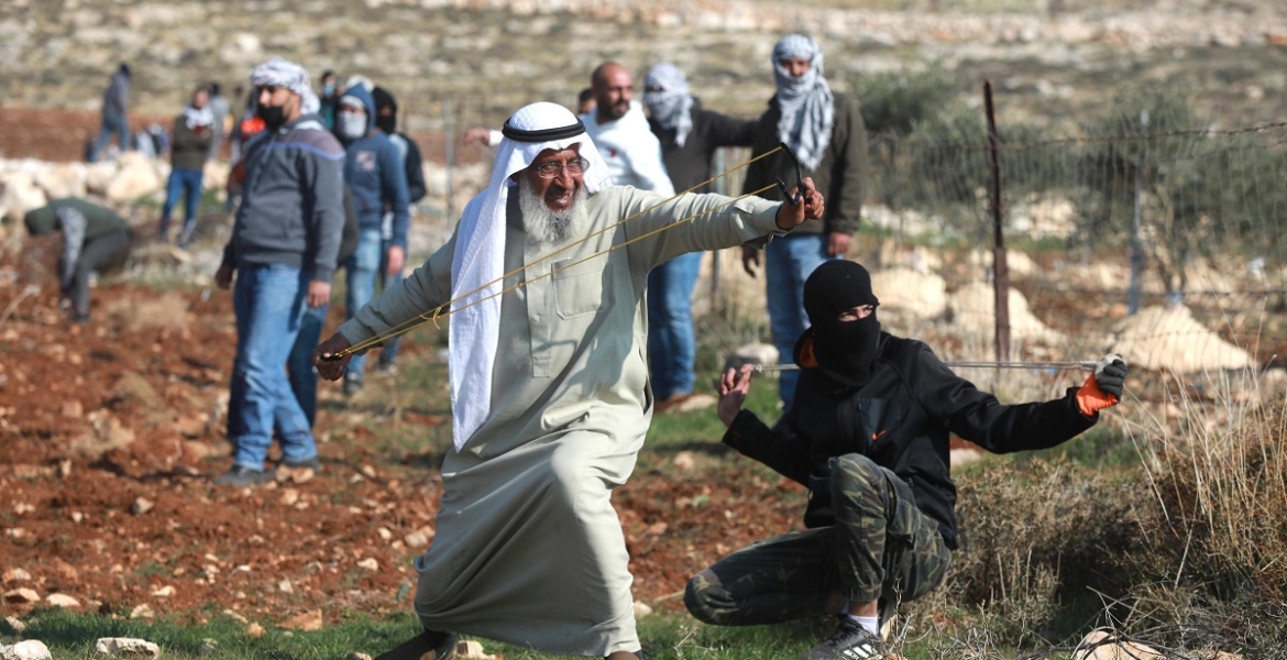 حيث أظهرت مقاطع مصورة التقطها مصور الأناضول للحاج سعيد الملقب بـ”أبي العبد”، وهو يرتدي الكوفية والعِقال والزي الفلسطيني التقليدي “القمباز”، مستخدماً المقلاع في إلقاء الحجارة خلال مواجهة الجنود الإسرائيليين، جنباً إلى جنب مع عشرات الشبان دفاعاً عن أراضيهم.