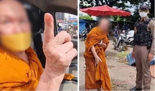 تسبب الراهب البوذي، فرا ثاناكورن، 63 عاما، في حالة من الفوضي، خارج أحد الأسواق المحلية في منطقة موينج لويج بتايلاند.