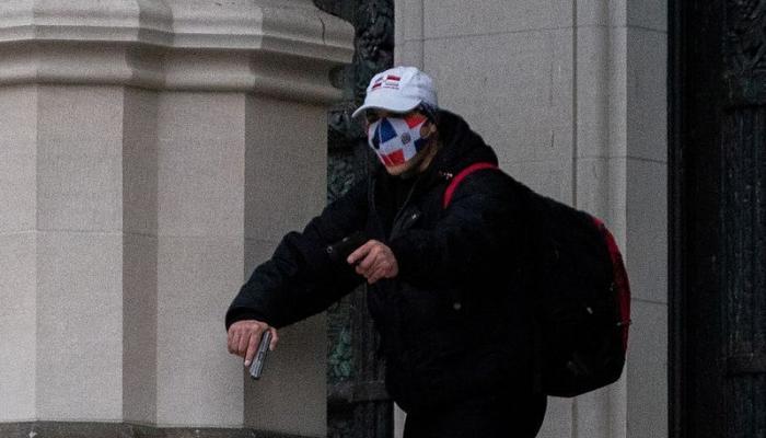 وكان المسلح يرتدي معطفا شتويا أسود وقبعة بيسبول بيضاء وكمامة مزينة بعلم جمهورية الدومينيكان ويحمل مسدسا في كل يد كما كان يحمل حقيبة ظهر كبيرة مربوطة على كتفيه.
