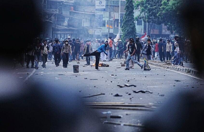 أطلقت قوات مكافحة الشغب قنابل غاز مسيل للدموع على آلاف الطلاب الذين رشقوا الحجارة أثناء محاولتهم الوصول إلى مبنى البرلمان في العاصمة الإندونيسية.