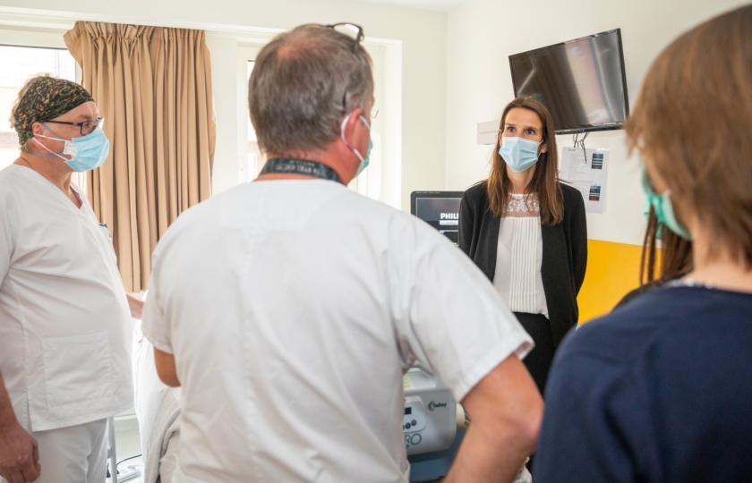 جولة رئيسة الوزراء: يأتي رد فعل الأطباء والممرضين في المستشفى، رداً على أول زيارة تقوم بها رئيسة الحكومة، للمستشفيات منذ بداية أزمة فيروس كورونا حول العالم.