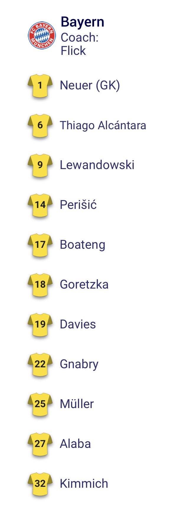 بينما وضع هانز فليك، المدير الفني للفريق البافاري، التشكيلة الأساسية التالية لمواجهة خصمه الكتالوني: