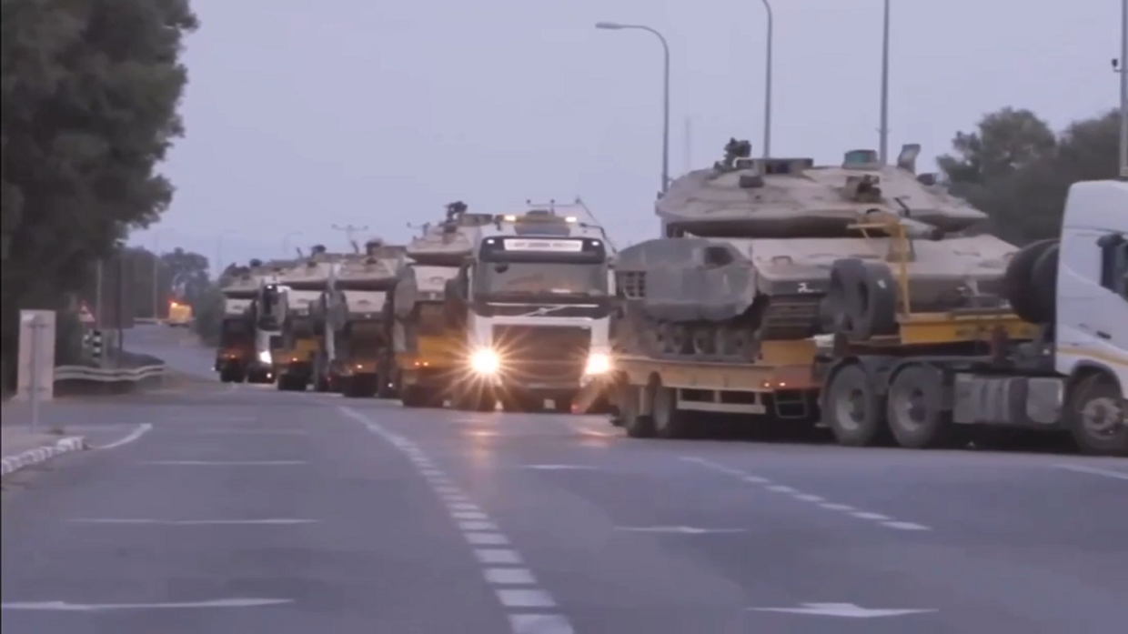 ووثق مقطع الفيديو شاحنات إسرائيلية تنقل دبابات وسط تصعيد من الجانب الإسرائيلي وتصريحات عن نقل مركز القوى إلى الشمال.