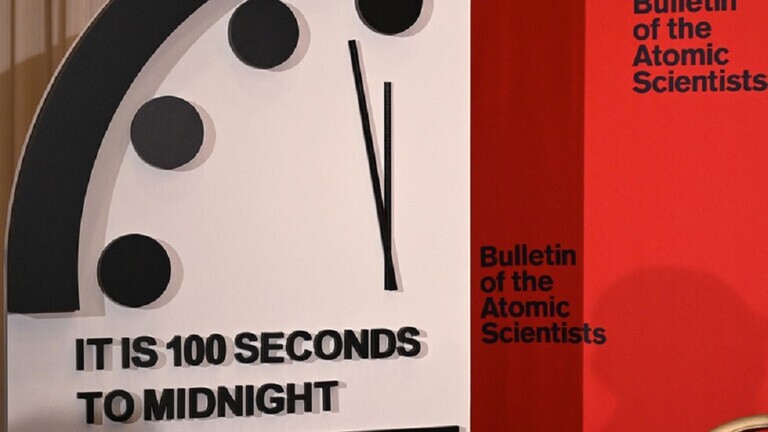 كشف علماء أن ساعة يوم القيامة ستظل عند 100 ثانية قبل منتصف الليل للعام الثالث على التوالي، لأن “العالم ليس أكثر أمانا مما كان عليه العام الماضي في مثل هذا الوقت”.