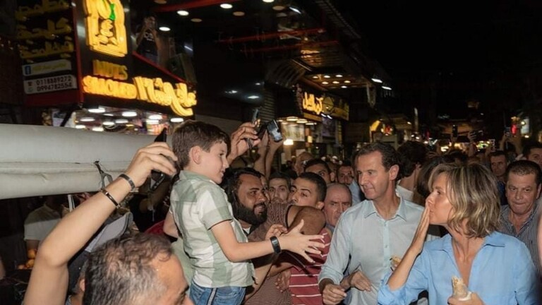 الرئيس السوري وعقيلته وأولادهما يقومون بجولة في حي الميدان بدمشق (صور + فيديو)