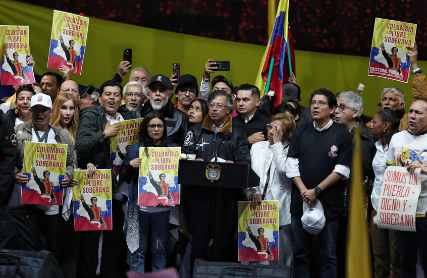 وأوضح بيترو، لدى وصوله إلى الساحة عقب يوم من الاحتجاجات التي دفعت السفارة الأميركية إلى إصدار تحذير لرعاياها في كولومبيا، أنه كان حتى وقت قريب في مكالمة هاتفية مع ترامب، ما تسبب في تأخره عن الحضور. واعتذر للحشود، كاشفا أن الاتصال فرض عليه إعادة صياغة كلمته.