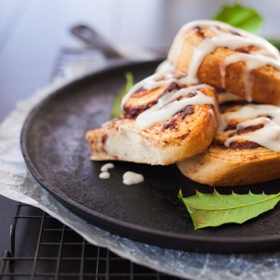- ضعي قطع السينابون بطبق التقديم، وزيني بالحليب المكثف المحلى.