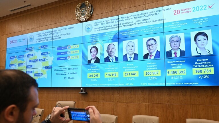 أعلن رئيس لجنة الانتخابات المركزية بكازاخستان، نورلان أبديروف، أن الرئيس الحالي قاسم جومارت توكايف فاز بالانتخابات الرئاسية التي أجريت في البلاد الأحد الماضي.