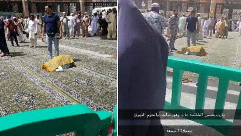 داول رواد مواقع التواصل الإجتماعي صورا لأحد المصلين، قيل إنه توفي وهو ساجد خلال صلاة الجمعة، في المسجد النبوي بالمدينة المنورة.