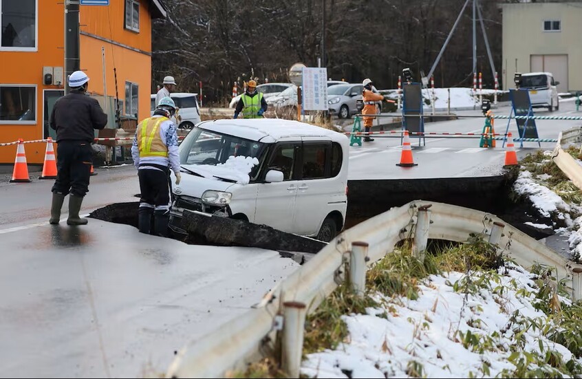 وذكرت رئيسة الوزراء ساناي تاكايشي أن الزلزال وقع قبالة سواحل منطقة أوموري الشمالية، وتسبب في موجات تسونامي بلغ ارتفاعها 70 سنتيمترا. وخفضت قوة الزلزال لاحقا من 7.6 إلى 7.5 درجة.