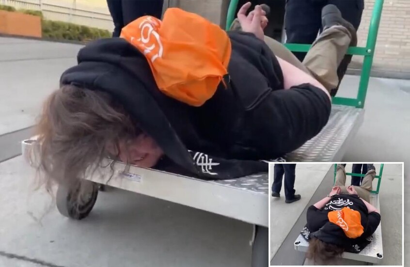 نشرت إدارة الهجرة والجمارك الأمريكية (ICE) مقطع فيديو مثيرا للجدل يظهر محتجا تم اعتقاله في بورتلاند يتم نقله على عربة مسطحة معدنية على أنغام أغنية هيب هوب.
