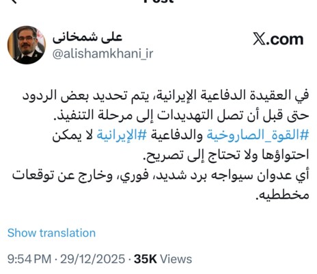 شمخاني ردا على ترامب: أي عدوان سيواجه برد شديد فوري وخارج عن توقعات مخططيه