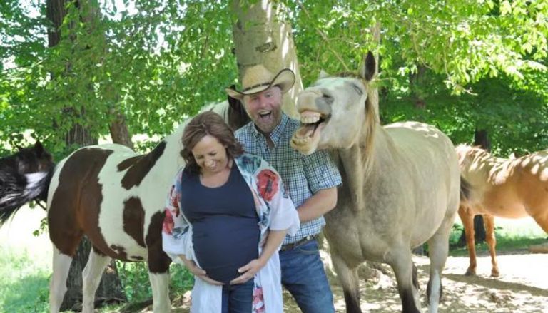 فالزوجة الحامل فيليب ويرنر، وزوجها أماندا إيكشتاين أرادا التقاط صورة مع مجموعة من الخيول في مزرعة ريفية في إنديانا بالولايات المتحدة الأمريكية، لكنهما لم يفكرا في “باكشوت” ذلك الحصان الأنيق، ذي الجبهة الداكنة واللون البيج، الذي قرر مشاركة فرحتهما وضحكتهما مع المصورة كريستين سافيرو، وكأنه كان يدرك مسبقًا أن صورته هي من ستخطف الأنظار.