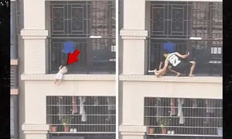 بطل صيني ينقذ طفلا قبل سقوطه من الطابق السابع