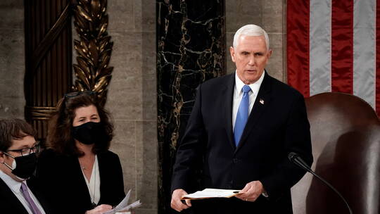 أعلن المتحدث باسم نائب الرئيس الأمريكي مايك بنس أن الأخير لم يغادر مبنى الكابيتول قط، بل كان يجري الاتصالات اللازمة لتسهيل جهود تأمين المبنى وإعادة انعقاد جلسة الكونغرس.