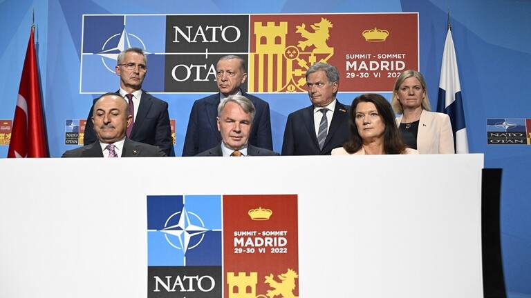 قمة مدريد 29-30 يونيو 2022 بحضور الرئيس التركي ورؤساء وزراء ووزراء خارجية تركيا والسويد وفنلندا مع أمين حلف الناتو.