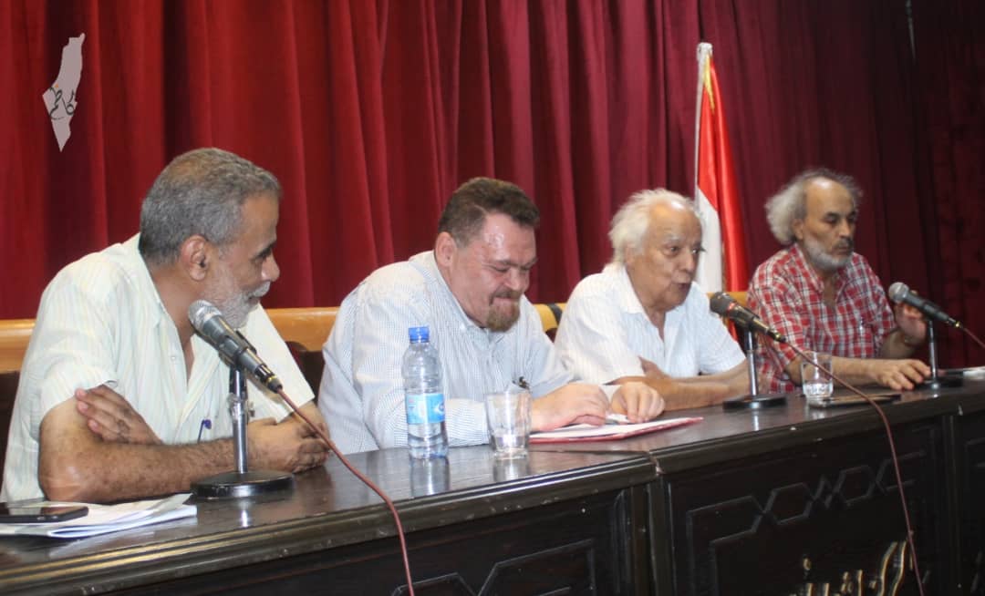 وجاءت الندوة برعاية مديرة الثقافة بدمشق، أكاديمية دار الثقافة في سورية، والمركز الثقافي في أبو رمانه وبحضور الرفيق عمر مراد عضو المكتب السياسي للجبهة الشعبية لتحرير فلسطين مسؤول الدائرة السياسية، وبمشاركة عدد كبير من الكتاب والمثقفين والصحفيين والمهتمين،