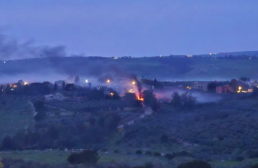 القوات الاسرائيلية تعمد إلى إحراق المنازل بعد توغلها في بلدة عدشيت القصير جنوبي لبنان.
