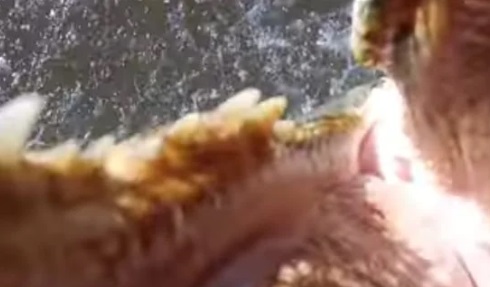أظهرت الكاميرا الموجودة في اخر لقطة تمكنت من نقلها قبل تهشيمها بين فكي التمساح، هي أسنان التمساح و هي تقوم بتكسير الكاميرا و العودة مرة أخرى إلى المياه .