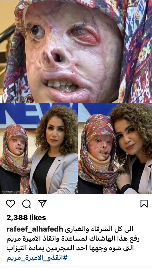 فقد تصدرت “الأميرة مريم” اهتمامات العراقيين على شبكات التواصل الاجتماعي، حيث أطلقوا حملة تضامن معها، فمنذ الخميس 16 ديسمبر/كانون الأول 2021، وحتى السبت 18 ديسمبر/كانون الأول، تصدّر وسم “#انقذوا_الاميرة_مريم” قائمة التغريدات الأكثر تداولاً في العراق.