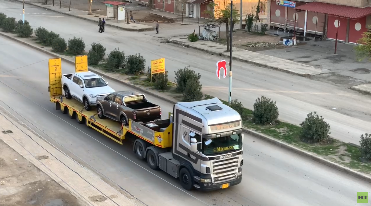 وأفاد مصدر صحفي بأن القافلة محملة ببعض العربات العسكرية والسيارات والجرافات، إضافة إلى مواد لوجستية وصهاريج لوقود الطائرات وشاحنات مغلقة، لم يتسن التأكد من محتواها.