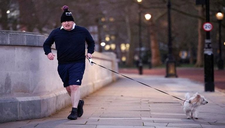 فقد اصطحب جونسون كلبه المدلل “ديلين” خلال ممارسة الرياضة اليومية “الجري”، الجمعة، فيما حاول الكلب أن يسير في اتجاه آخر غير الذي يسير فيه رئيس الوزراء البريطاني.
