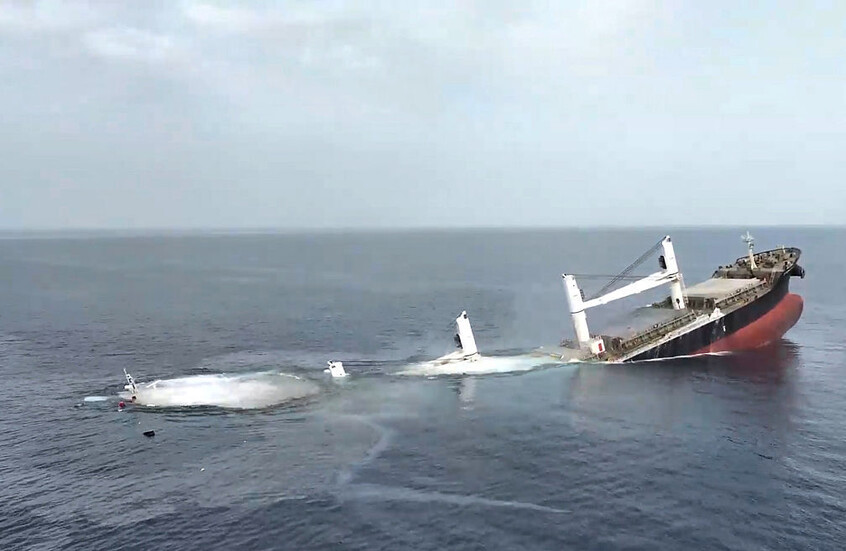 وقد بدأت مهمة الإنقاذ يوم الأربعاء، بعد أن أغرق الحوثيون السفينة “إترنيتي سي”، التي ترفع علم ليبيريا، وكان على متنها 22 فردا من الطاقم وثلاثة حراس مسلحين. وتم الهجوم باستخدام طائرات مسيّرة بحرية وقذائف صاروخية على مدار يومين متتالين.