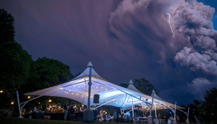 زفاف تحت سحابة بركانية عملاقة في الفلبين