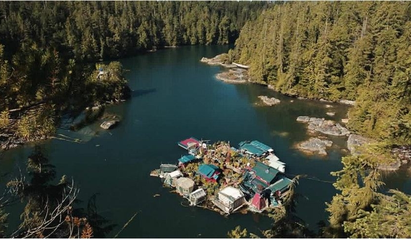 على بعد 10 أميال شمال منطقة توفينو الواقعة في مقاطعة كولومبيا في كندا، وتحديداً قبالة ساحل جزيرة فانكوفر، تعيش كاثرين كينغ ووين آدامز في مسكن عائم مستدام. يُطلق على هذا المكان “كهف الحرية”، وقد بني بالحب أولاً ثم يدوياً باستخدام مواد معاد تدويرها وتصنيعها. وكان هذا المكان منزلهم على مدى الـ 29 عاماً الماضية.