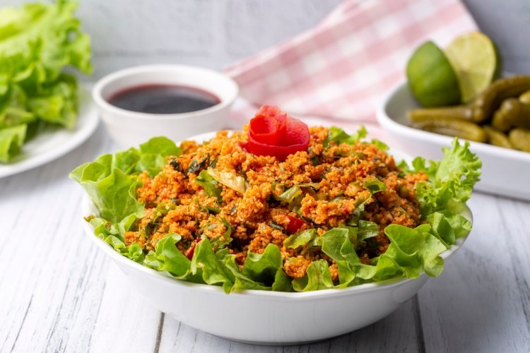 - صفي البرغل من الماء، وضعيه في وعاء كبير الحجم، ثم أضيفي إليه عصير الليمون، والملح، ومعجون الطماطم، ومعجون الفلفل الأحمر، واخلطي المكونات جيداً مع بعضها البعض.