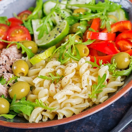 سلطة التونة مع المكرونة والخضار لرجيم متوازن