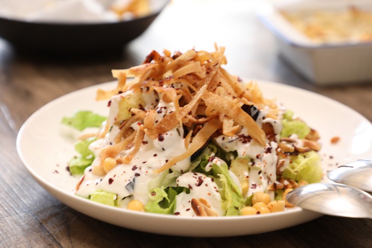 - زيني بالحمص الحبّ، والخبز المحمص واللوز والسماق وقدمي السلطة.