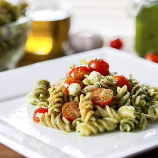 3. أضيفي البستو وعصير الليمون وجبن الفيتا وحركي حتى تتمازج المكونات وقدميها دافئة أو باردة حسب الرغبة.