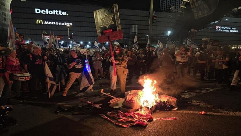هذا واندلعت اشتباكات عنيفة مساء اليوم السبت، بين الشرطة الإسرائيلية والمتظاهرين المطالبين بإقالة رئيس الوزراء بنيامين نتنياهو وعقد صفقة تبادل فورية في عدة شوارع بتل أبيب.