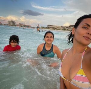 وتظهر الشهراني بـ”البيكيني” صحبة أبنائها داخل البحر، ويبدو أنها اختارت توثيق تلك اللحظات السعيدة بصورة سيلفي.