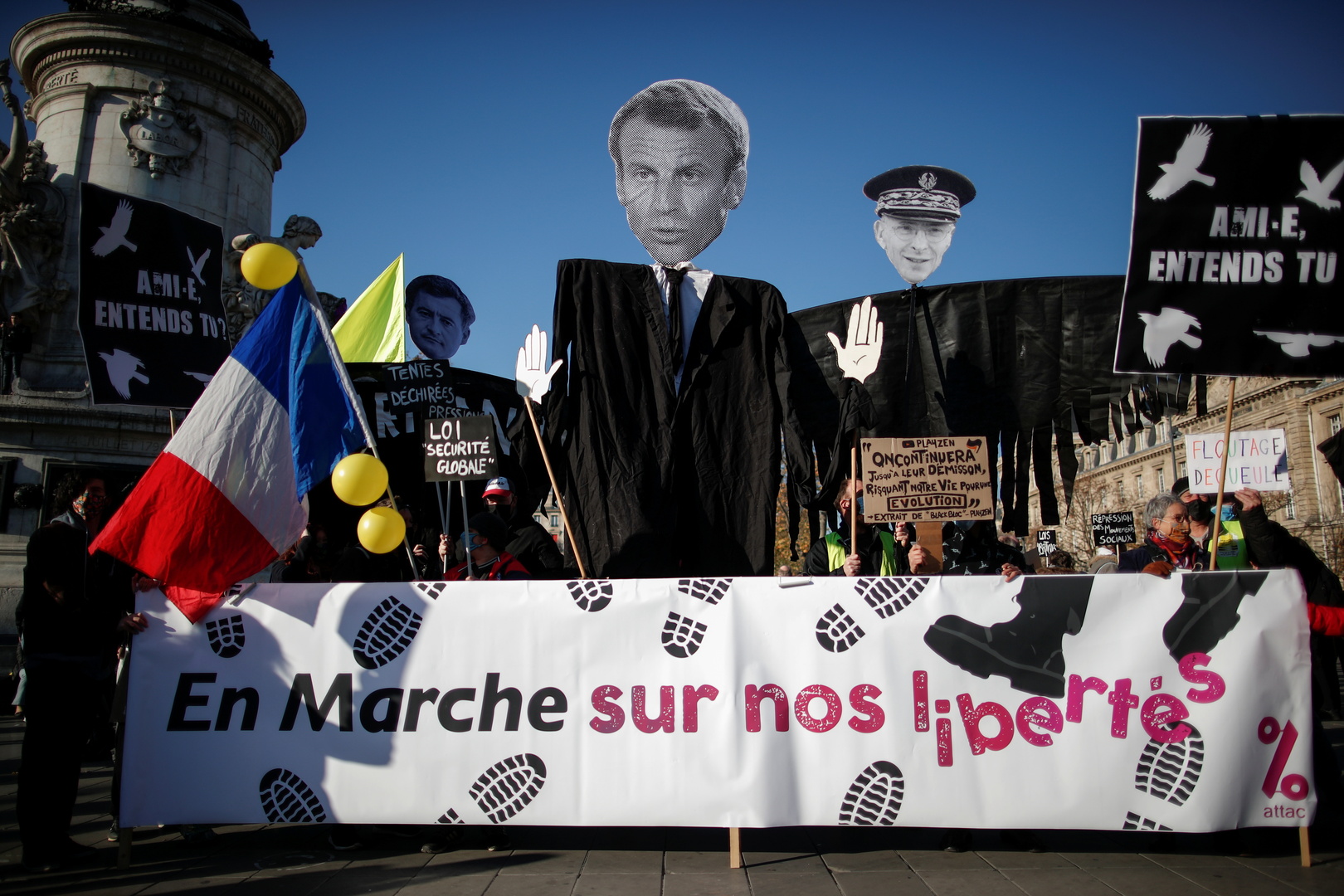 وتظاهر آلاف الأشخاص في جميع أنحاء فرنسا احتجاجا على عنف الشرطة وطالبوا بحرية الصحافة بعد أن ضربت الشرطة منتجا موسيقيا من أصول إفريقية ما أثار الغضب بشأن مشروع قانون يُنظر إليه على أنه يحد من حق الصحفيين في الإبلاغ عن وحشية الشرطة.
