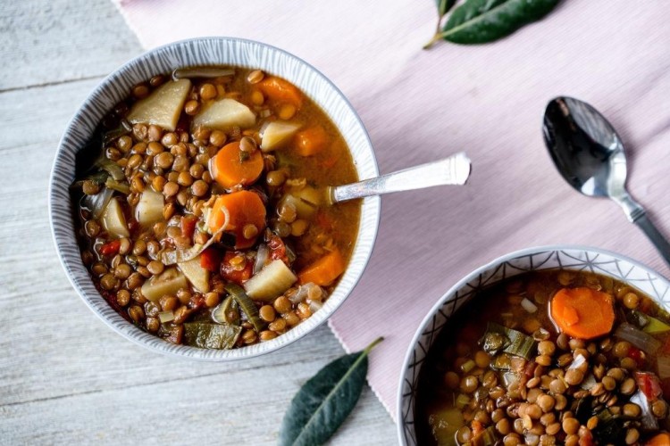 - وزعي شوربة العدس بالخضار في أطباق التقديم، وقدميها ساخنة.