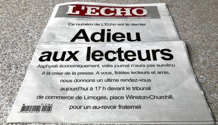 من جانبها، أعربت صحيفة “لوموند” الفرنسية في افتتاحيتها، عن أسفها لاختفاء الصحيفة الإقليمية “ليكو”، التي توزع في عدة أقاليم بوسط فرنسا، بعد إعلان شركة النشر المالكة لها بتصفيتها بسبب عجز التمويل الذي تعاني منه الصحيفة، موضحة أن الصحيفة لم تنج من الأزمة التي تشهدها الصحافة، مودعة قراءها بأحرف كبيرة”.