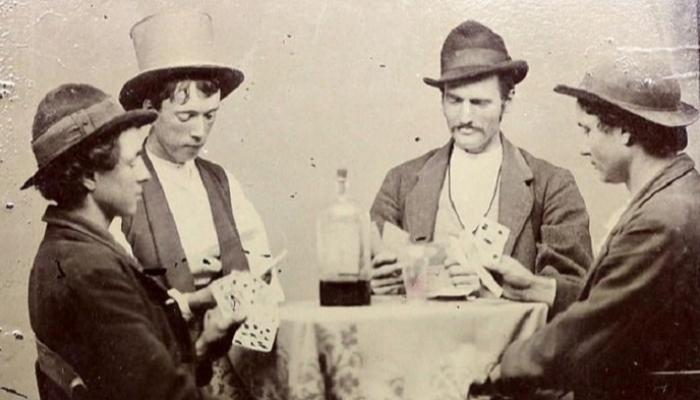 الصورة التي لم تظهر من قبل منذ عام 1877 تظهر بيلي وهو يلعب الورق مع عصابته.
