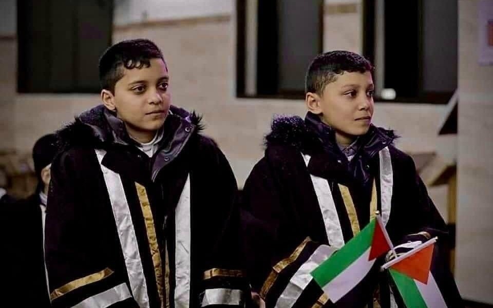 بينما نشرت الكتلة، الإثنين 7 فبراير/شباط، صوراً لطفلي “الضيف”، وهما يرتديان زيّ التخرّج، ويحملان الأعلام الفلسطينية، ويتوجّهان لتسلم شهادات التكريم.