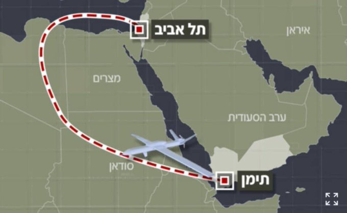 وسردت القناة في تقريرها المرفق بخريطة توضيحية تفاصيل عن مسار الطائرة المسيرة التي سلكت طريقا جديدا حيث انطلقت من اليمن، وعبرت إريتريا ومن ثم السودان وليبيا وانحرفت شرقا عبر البحر الأبيض المتوسط شمالي مصر، ومن هناك إلى عمق الأراضي الإسرائيلية.