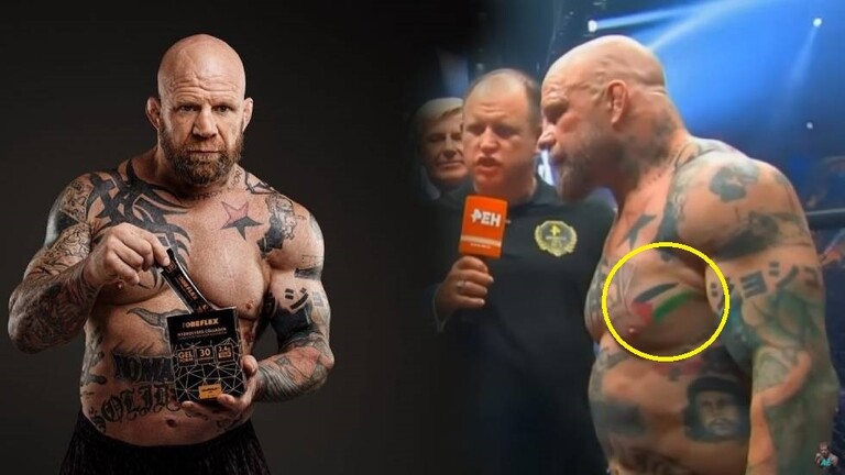 وجاء نزال جيف مونسون بعد ساعات من انطلاق الحملة العسكرية الإسرائيلية على غزة، أمس الجمعة، ولكن المقاتل الأمريكي الأصل، الذي يعرف ربما بمواقفه الثورية وتضامنه مع الشعوب المضطهدة، رسم صورة العلم الفلسطيني على صدره قبل ذلك، ويظهر على جسد مجموعة من الوشم أبرزها صورة الثائر تشي غيفارا.